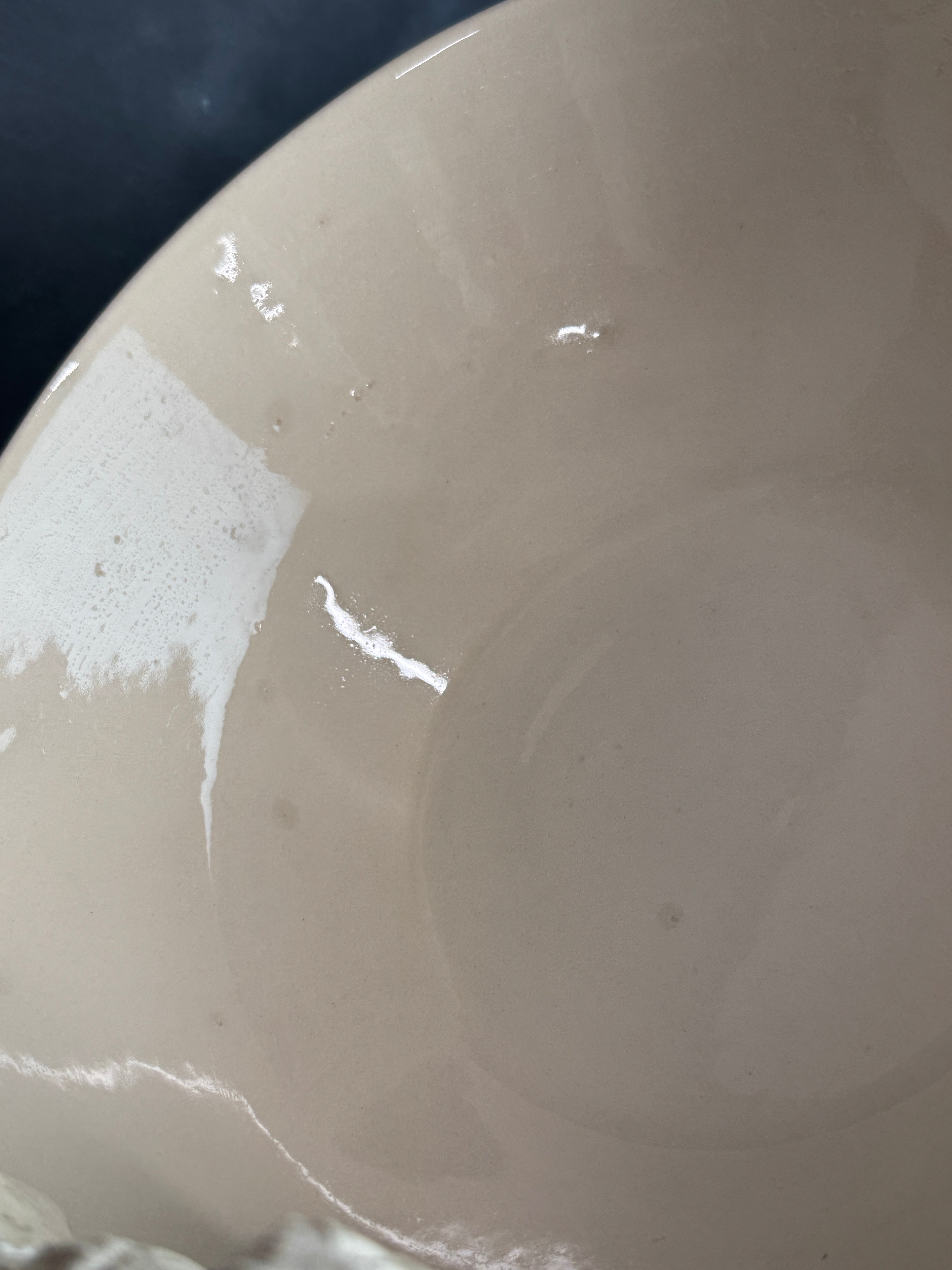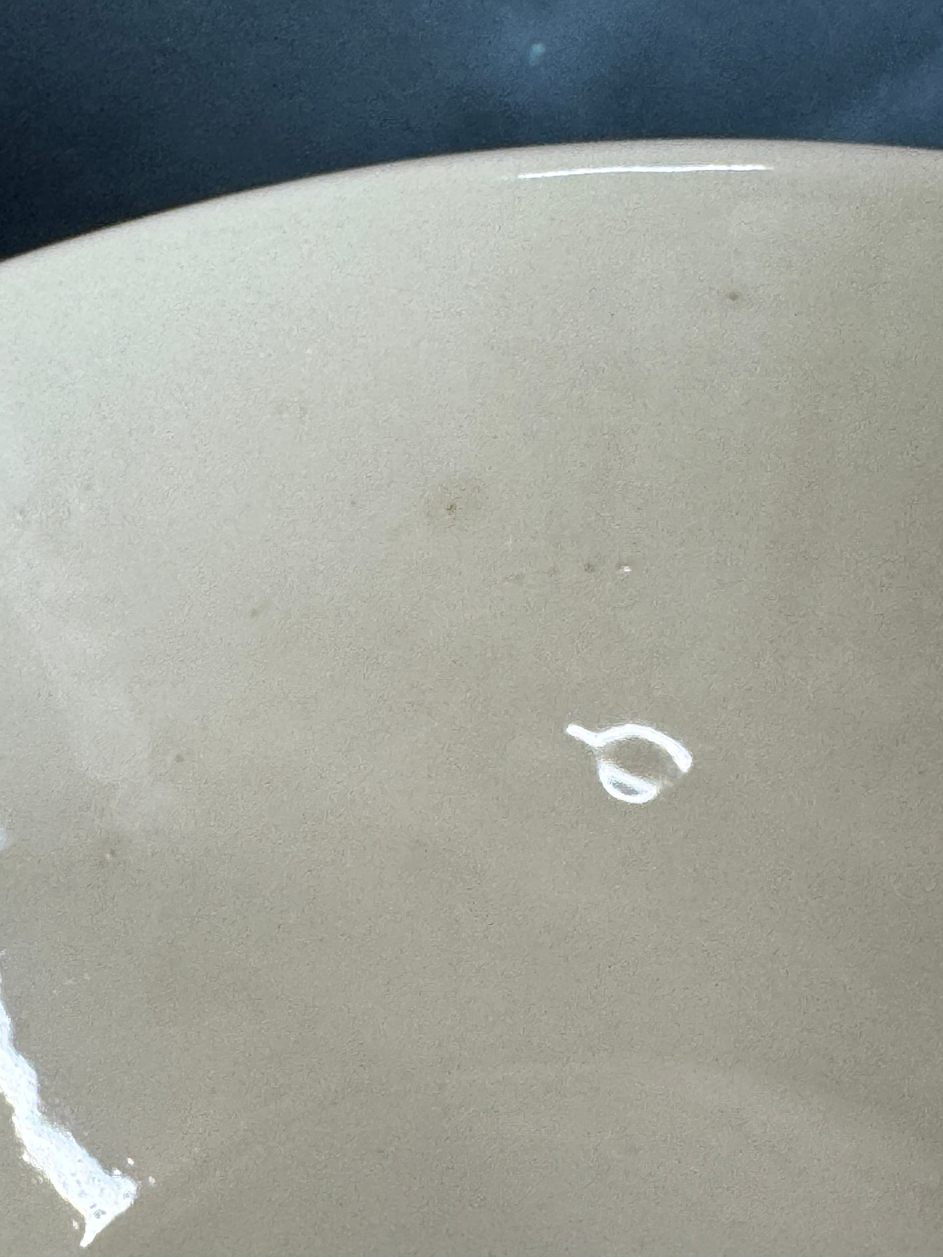 Defektas: dubenėlio viduje glazūroje skylutės, taškiukai. Išryškėja sušlapus.