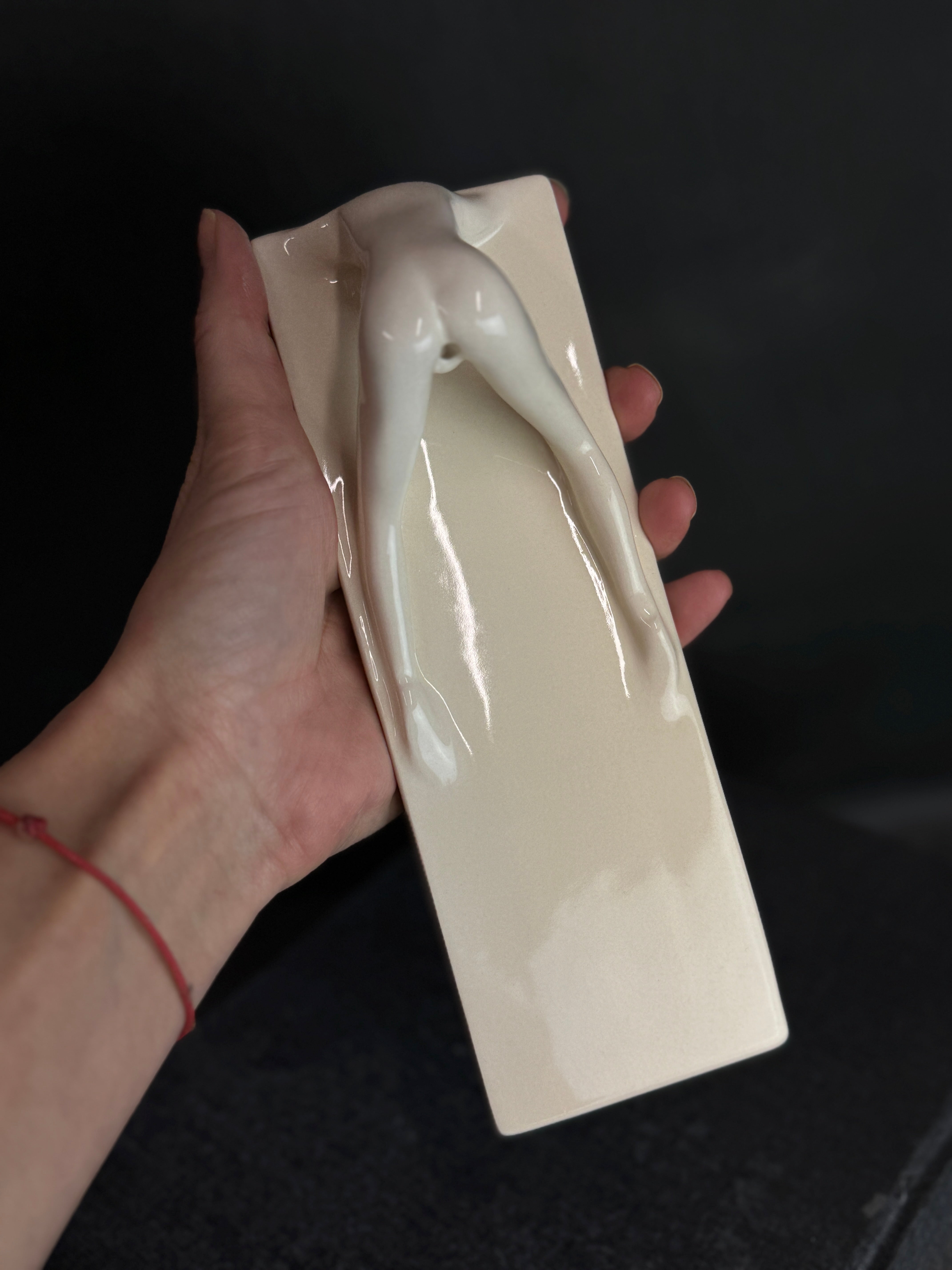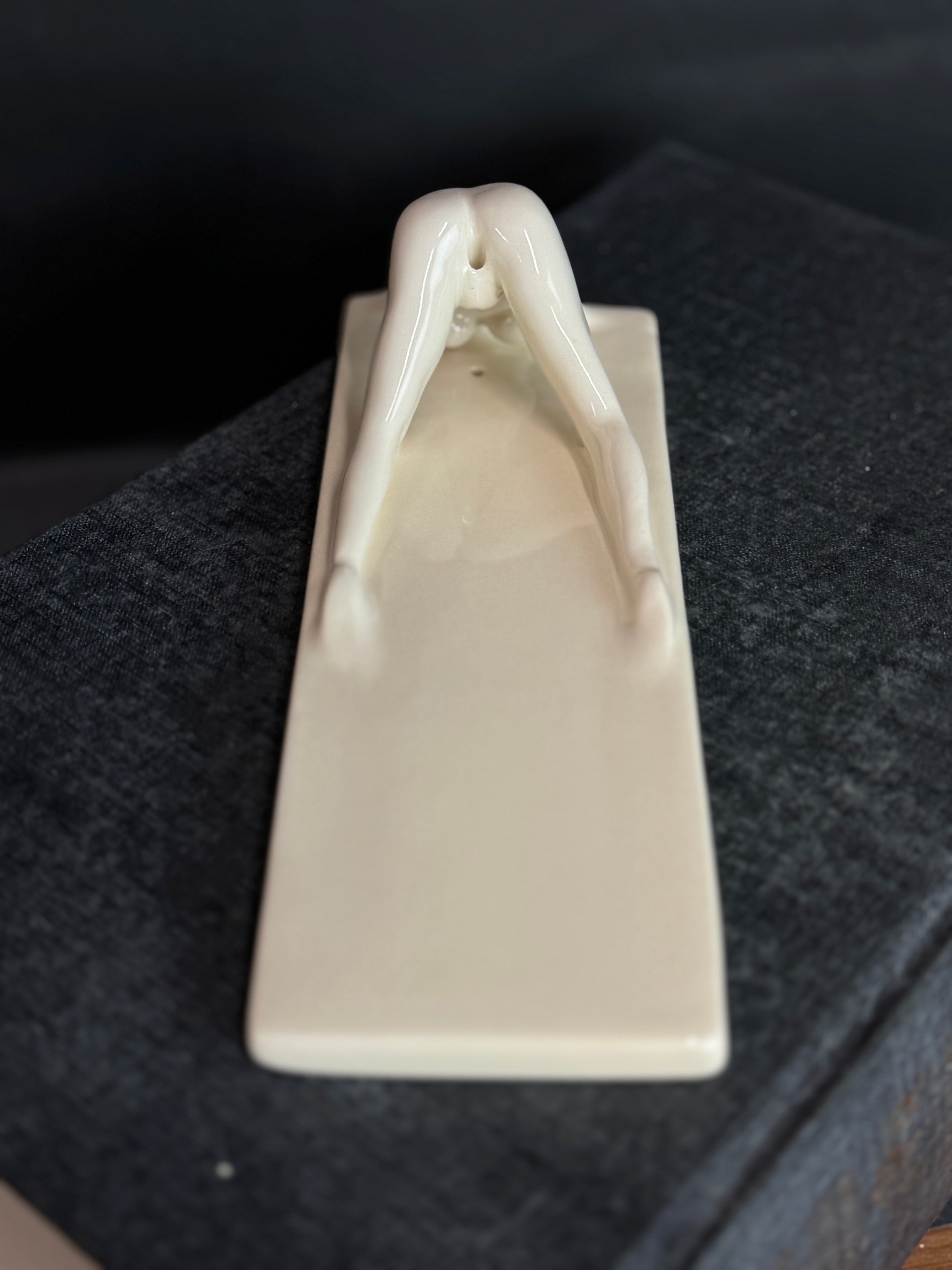 Rankų darbo provokuojanti smilkalinė su moters kūnu.
