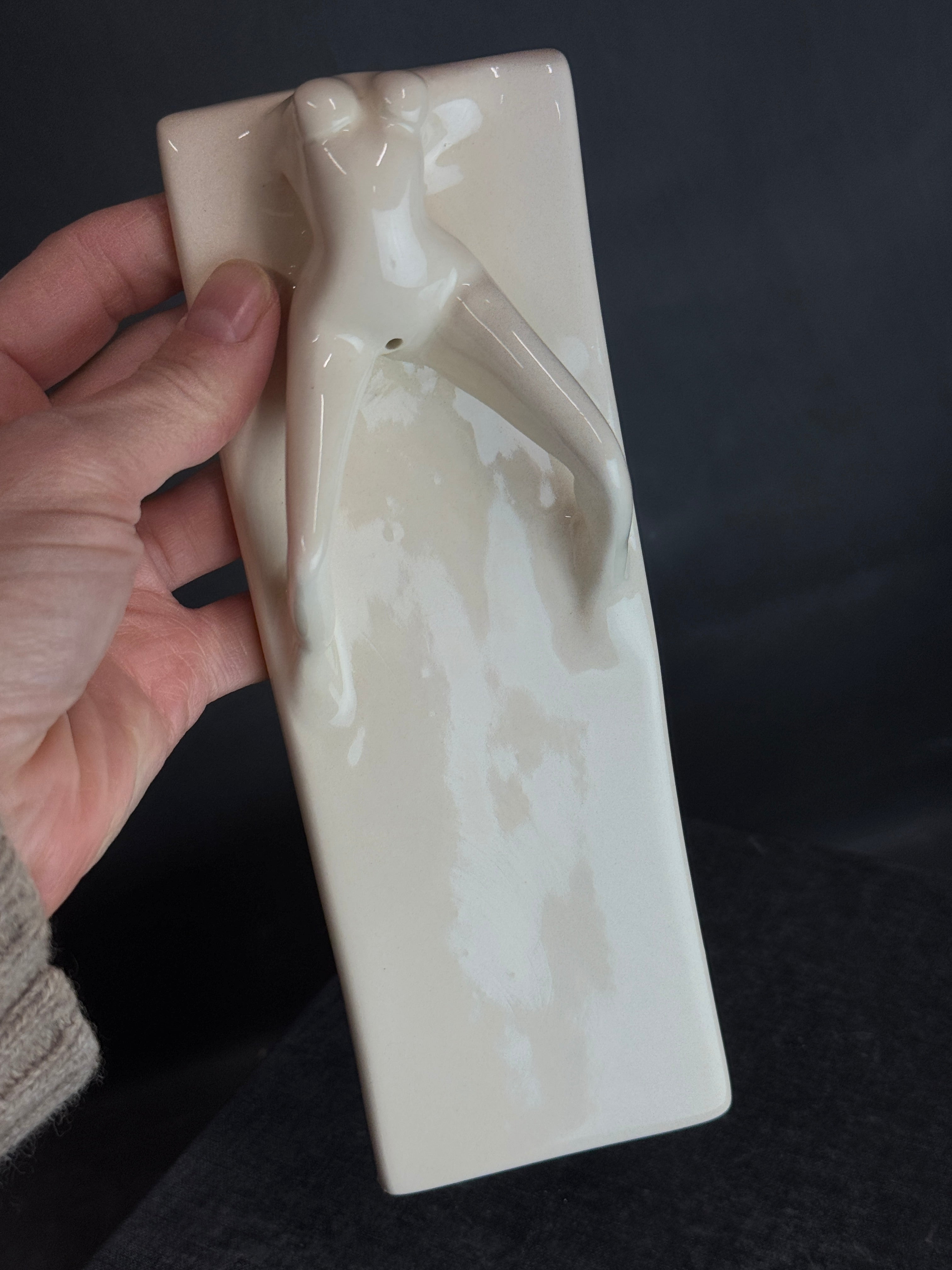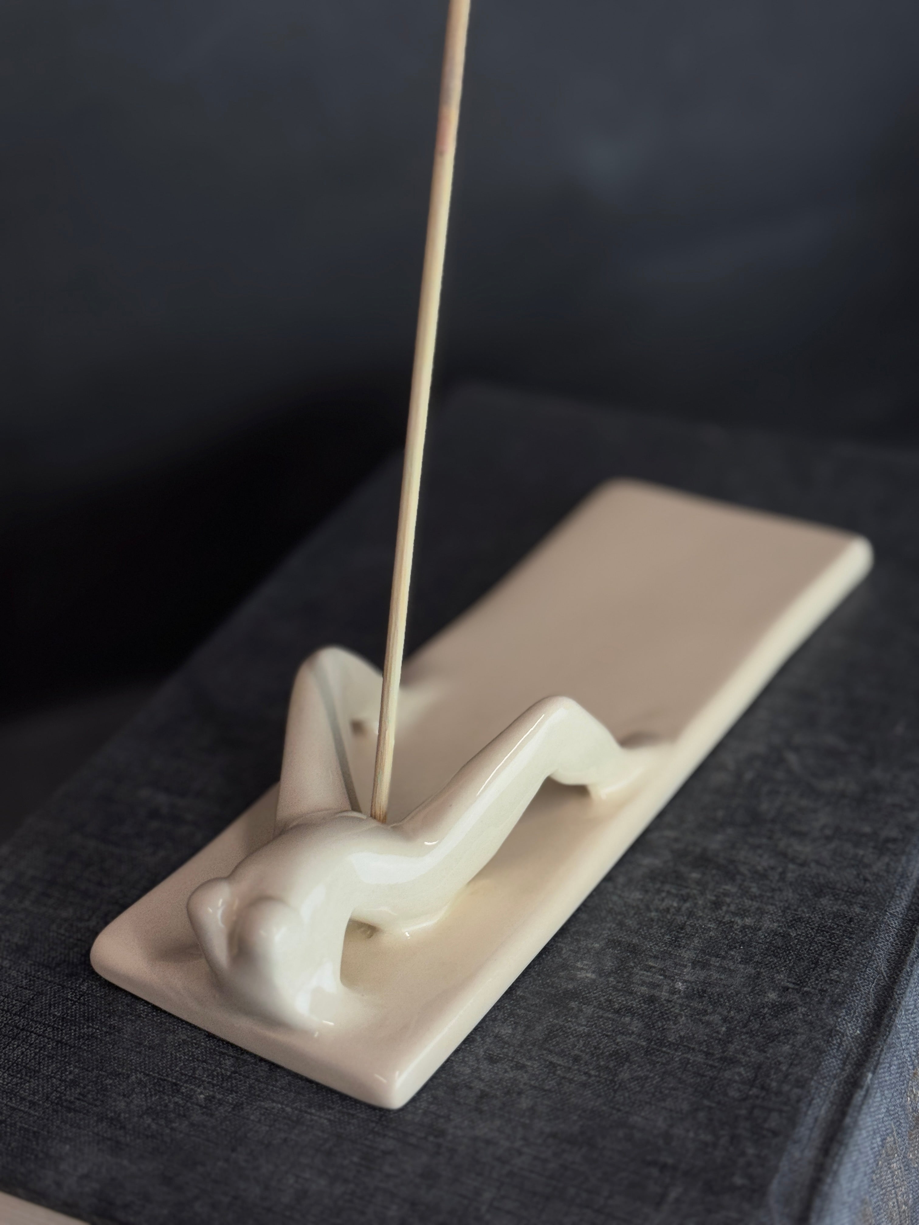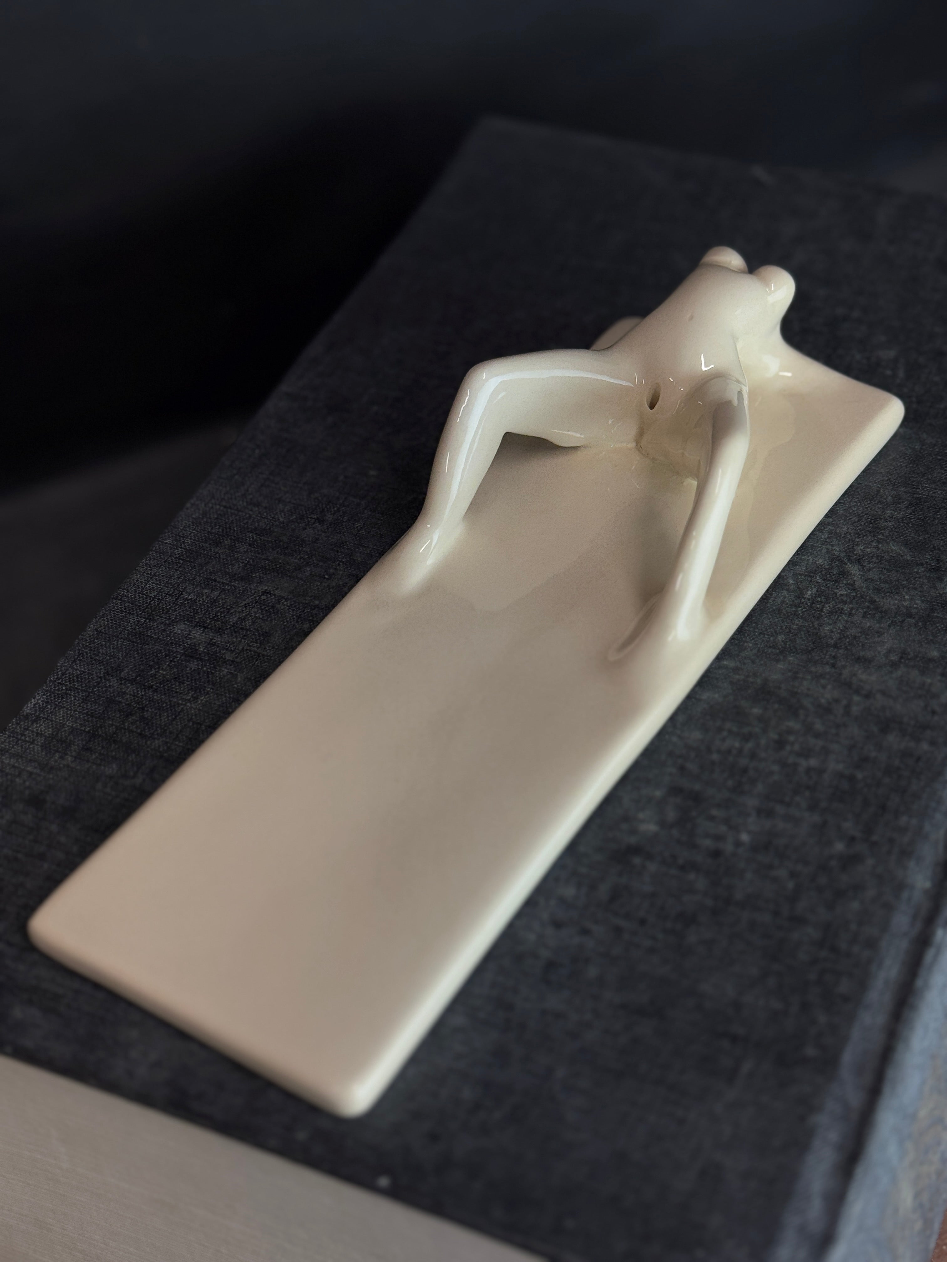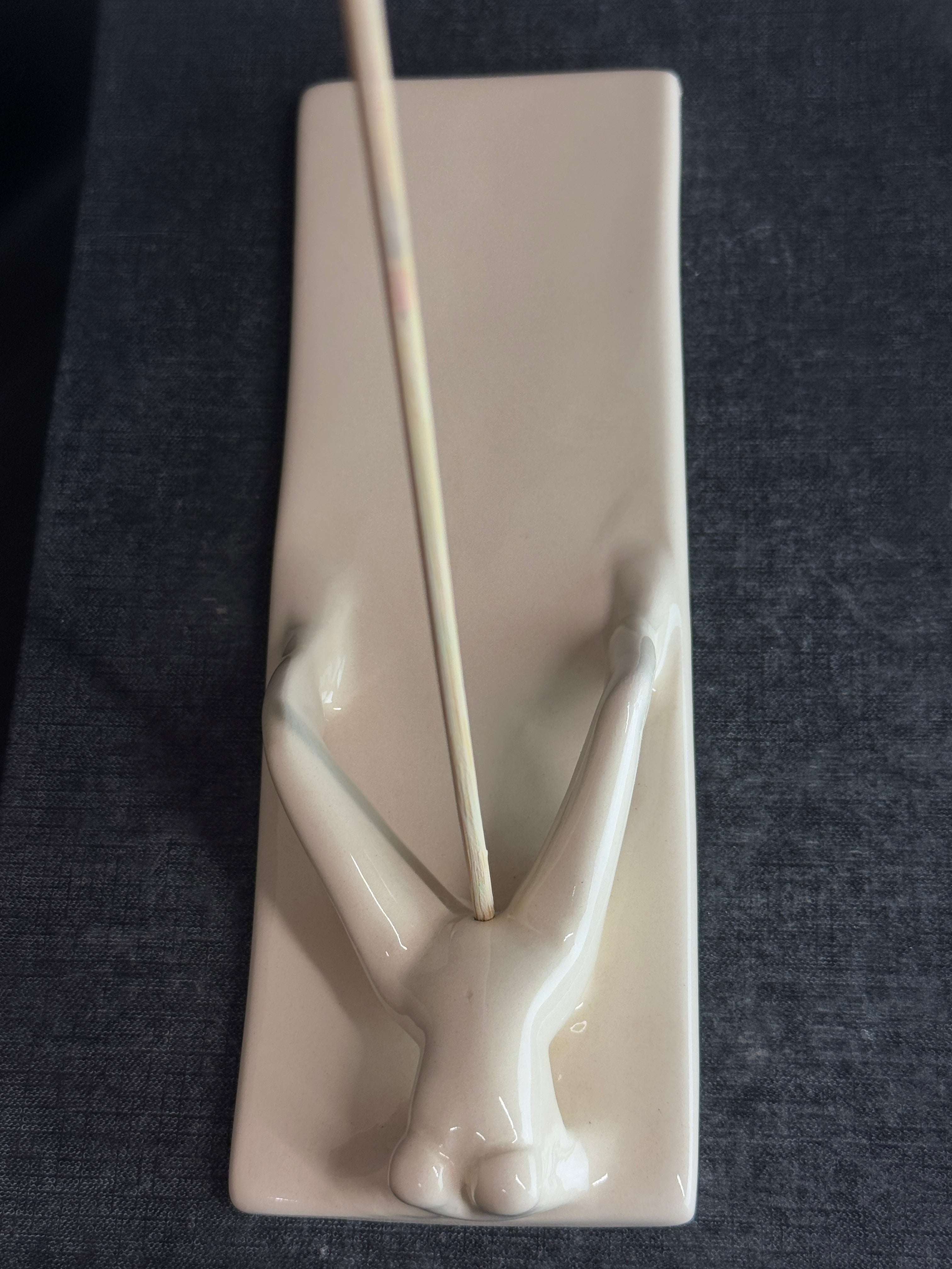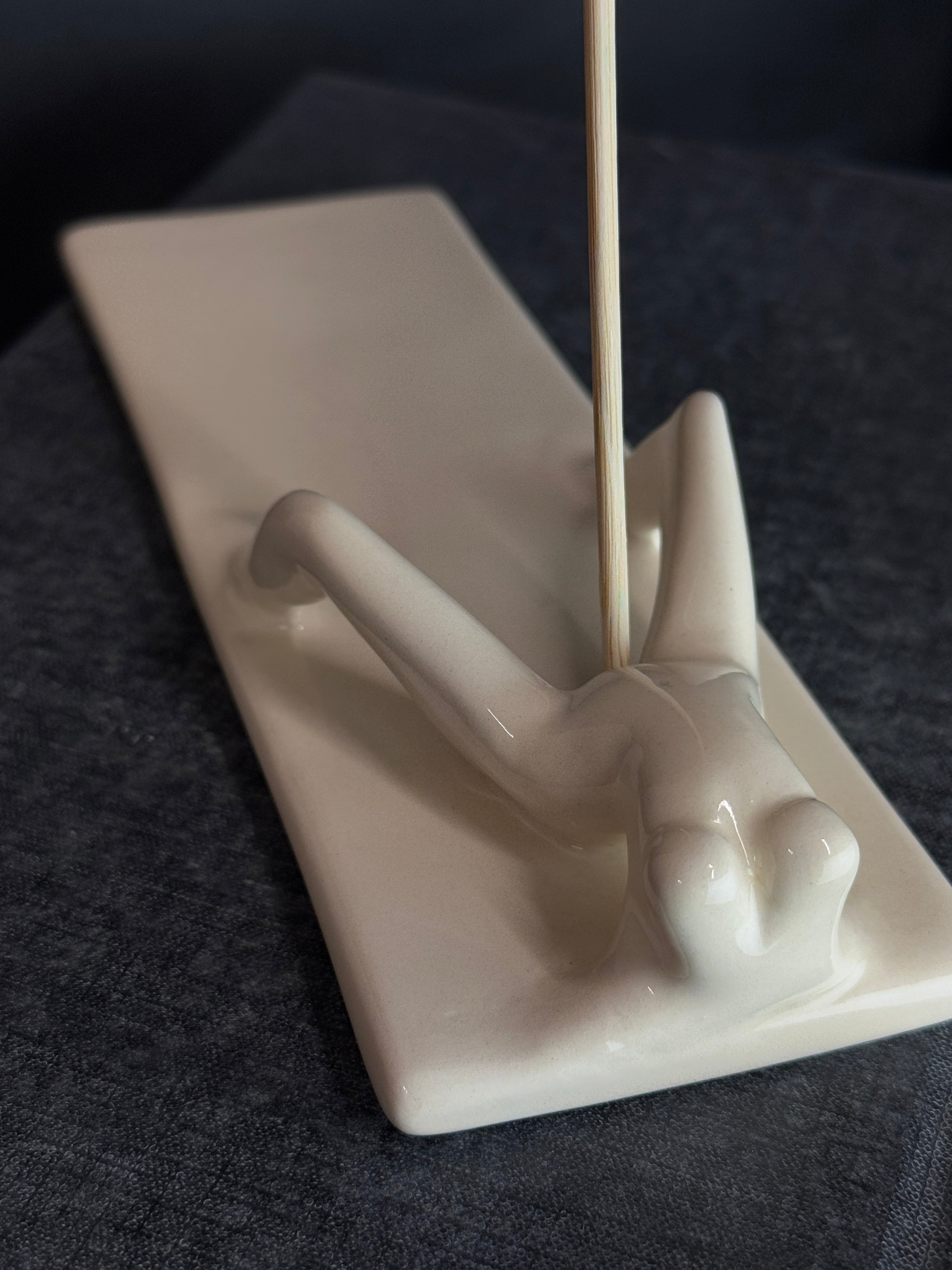 Rankų darbo provokuojanti smilkalinė su moters kūnu.