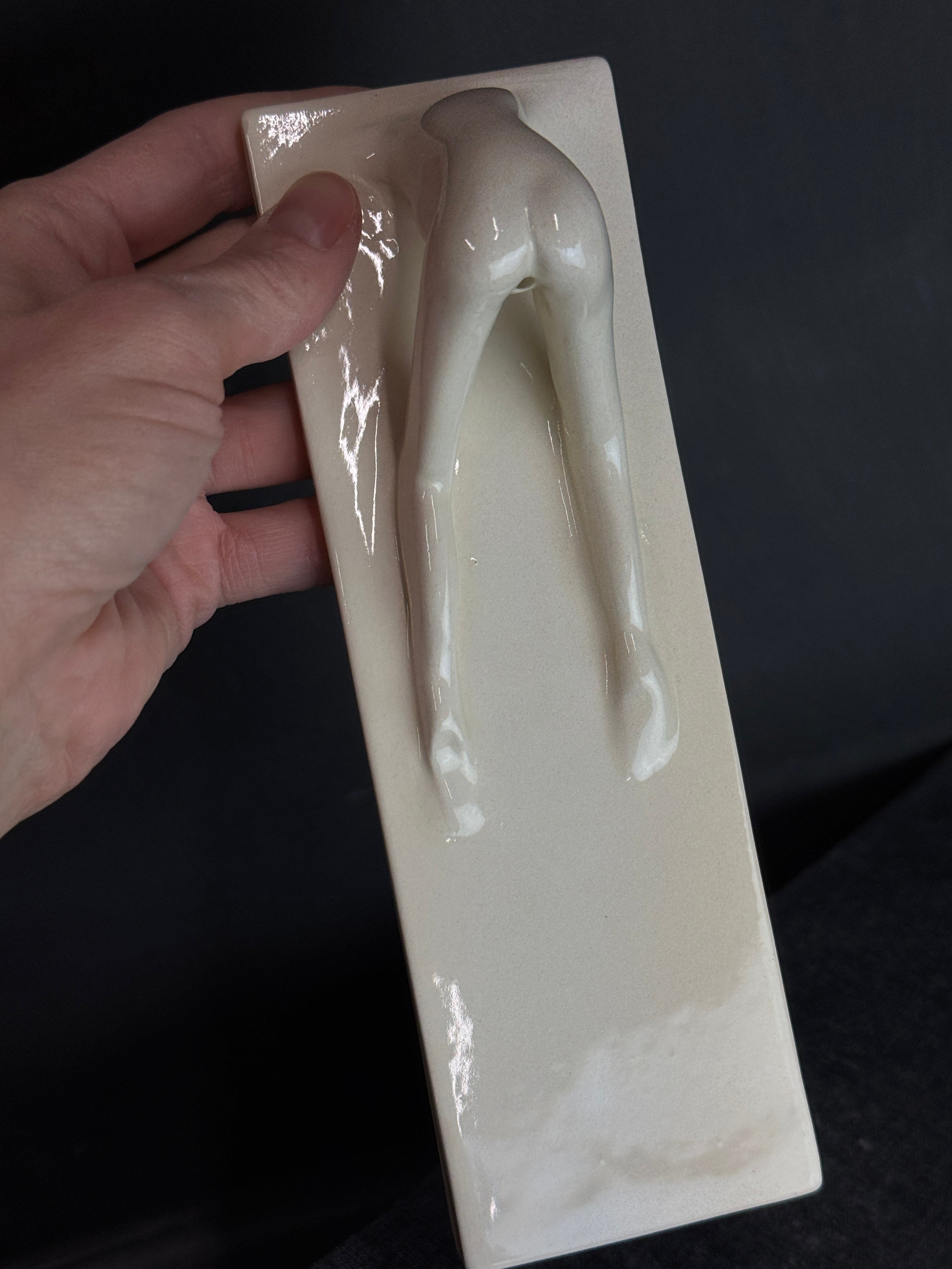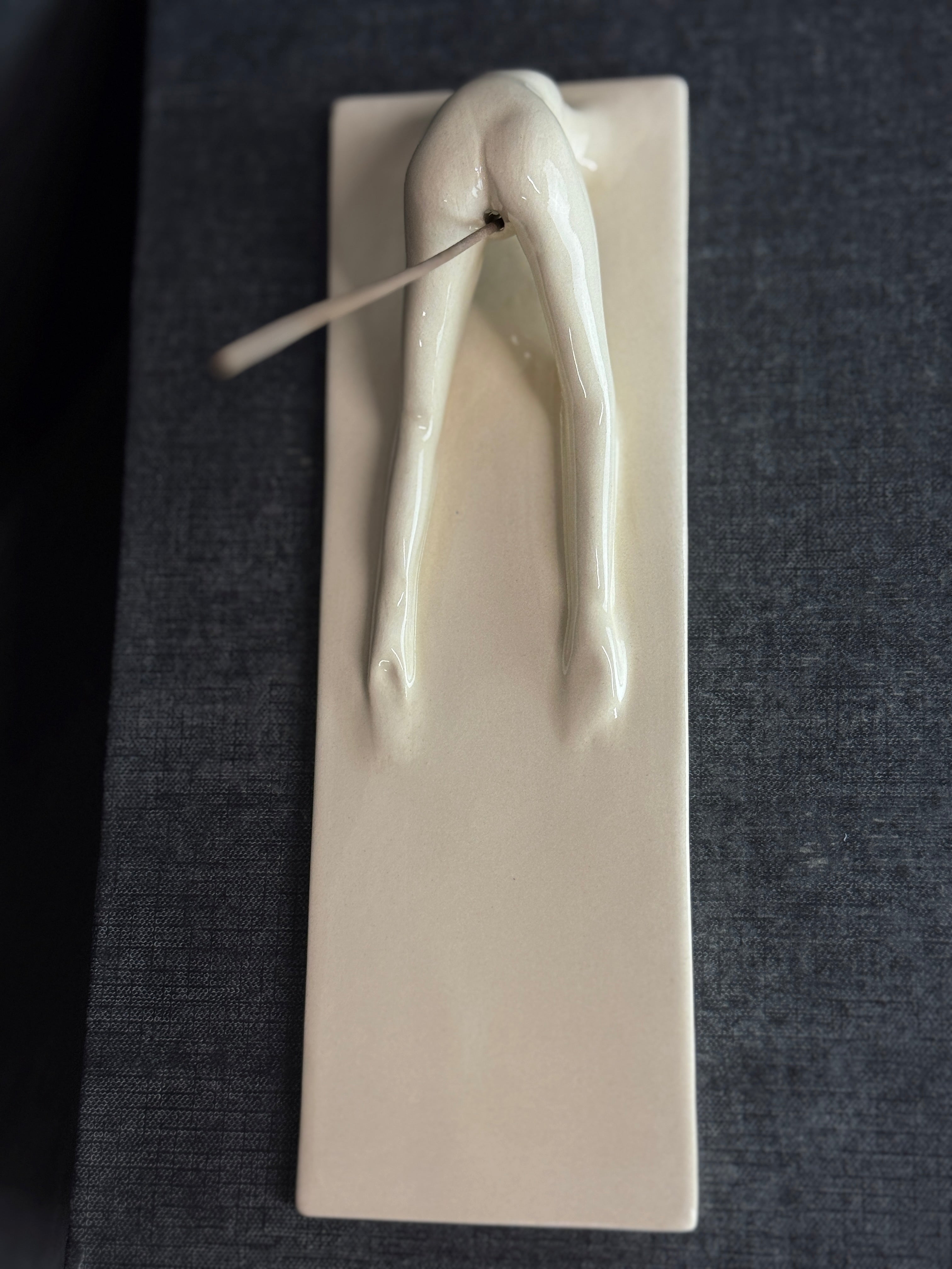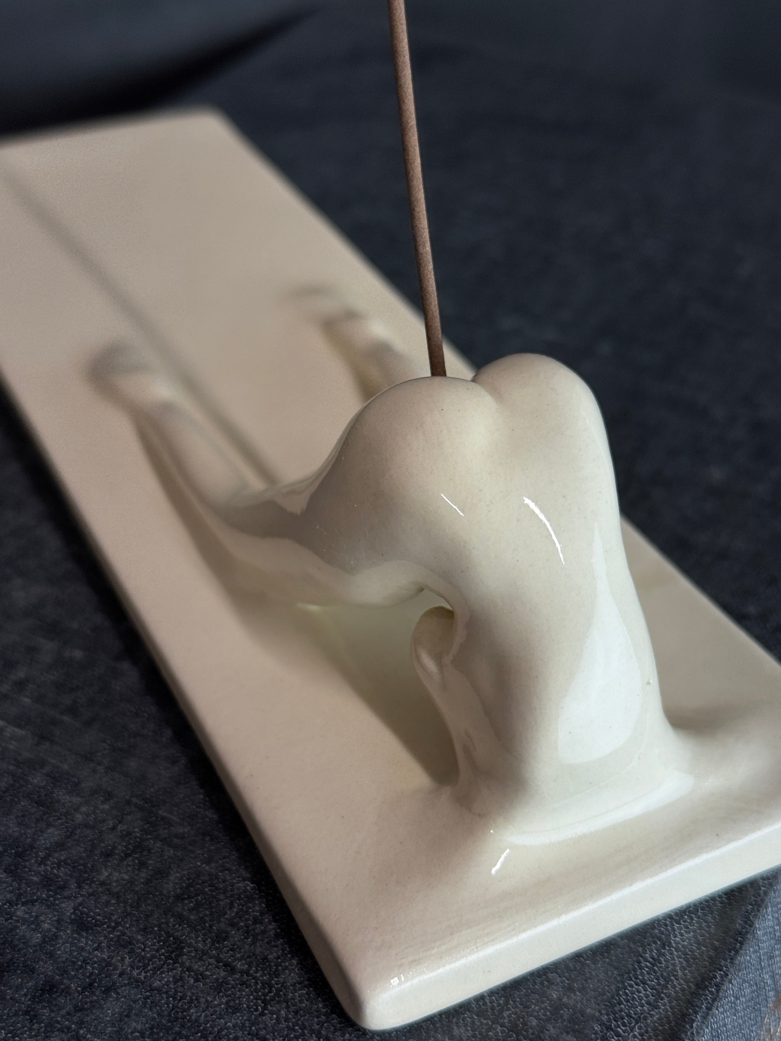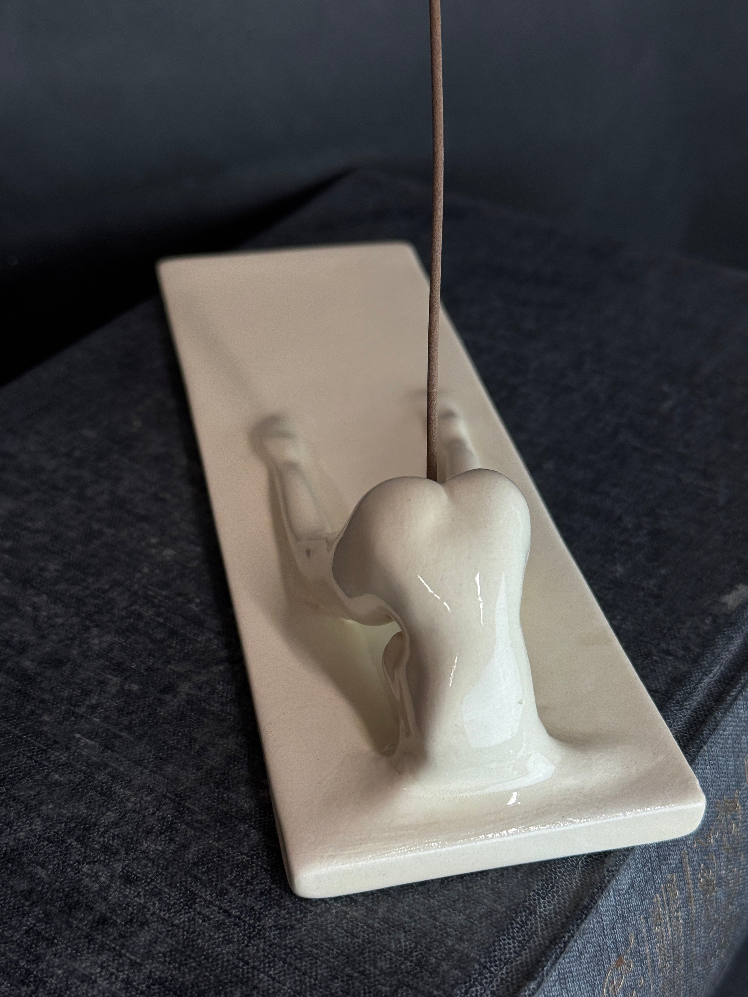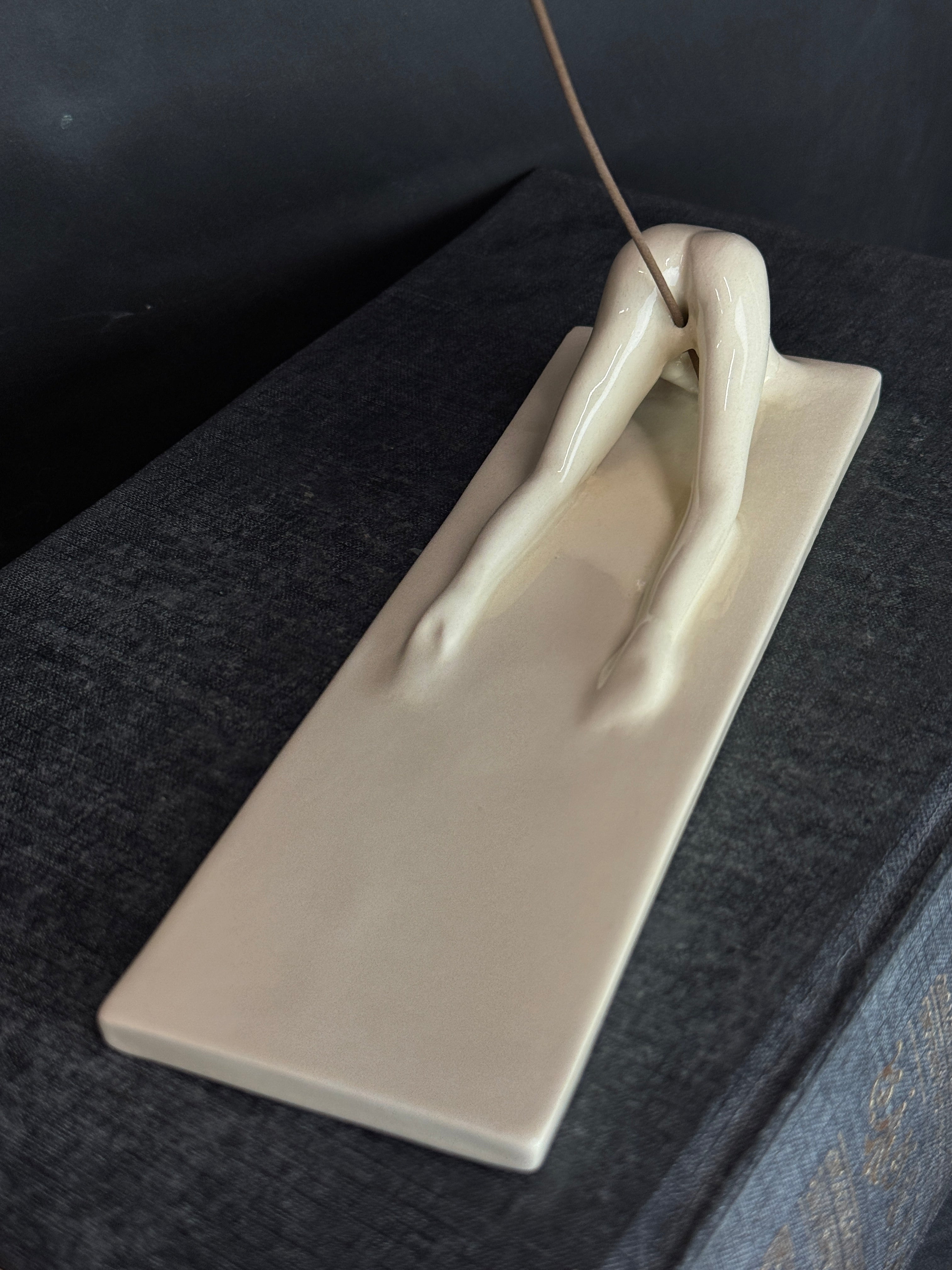 Rankų darbo provokuojanti smilkalinė su moters kūnu.